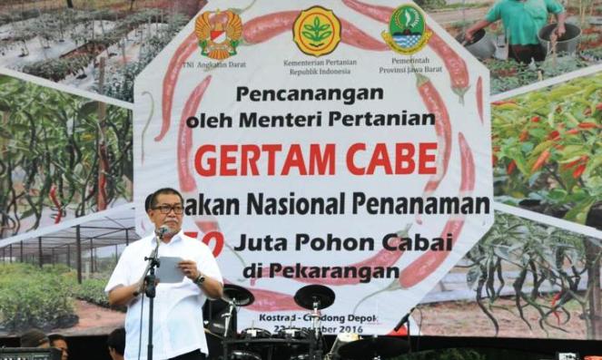 Dia menegaskan, Gertam sudah diprogramkan bersama Kementerian Pertanian belum lama ini. Dan Jabar sebagai pilot project melakukan gerakan penenaman cabai di pekarangan rumah. ”Ini kan sebetulnya sudah di-lauching waktu di Depok dan sekarang mari kita gelorakan kembali agar harga cabai turun,” ajaknya.